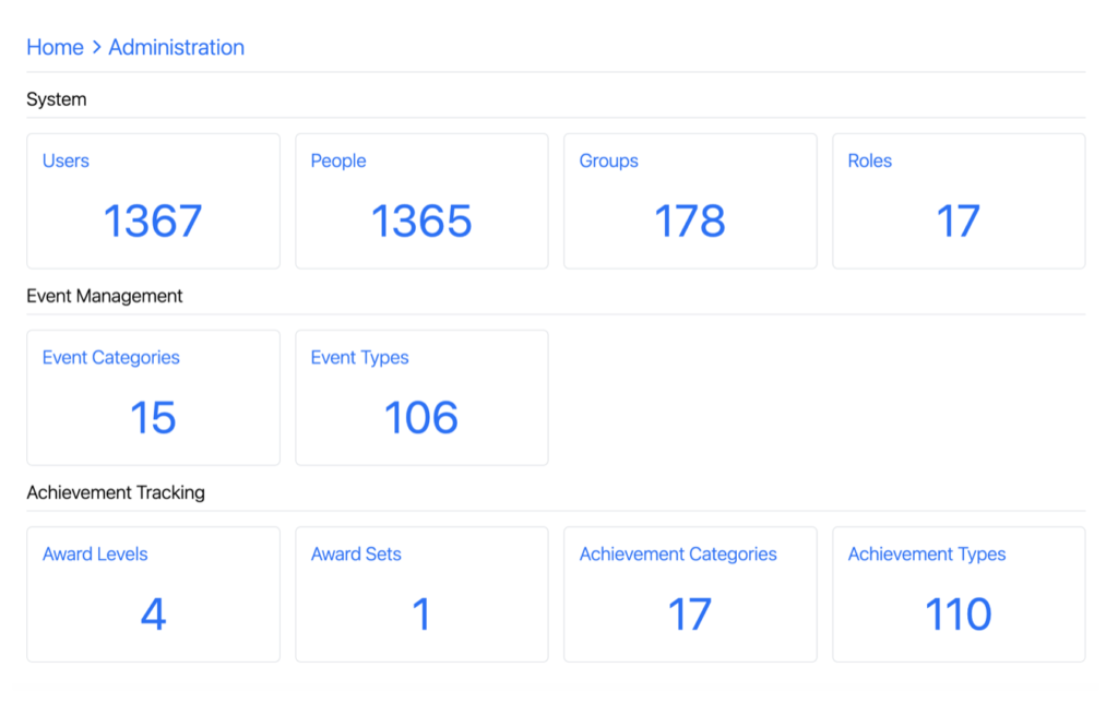 As students attend and complete any event, they are given points that count towards achievements in that event type and, eventually, awards.